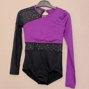 WEISSMAN Dance Costume purple mesh rhinestone leotard Don't Call Me Up 14146 MC