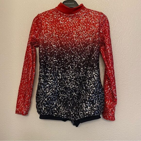 WEISSMAN Dance Costume red black ombre Lost It To Trying 12731 Child MC/LC