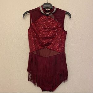 WEISSMAN Dance Costume burgundy fringe The Coolest Thing Ever 13815 child LC