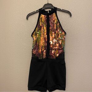 WEISSMAN Dance costume jazz black mesh gold sequin We Will Rock You 14757 SA