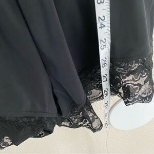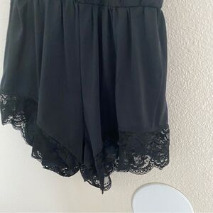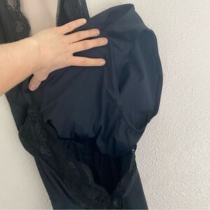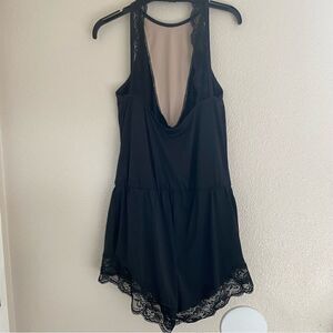 Matte jersey romper with power mesh plunge inset trimmed in stretch lace