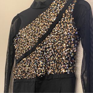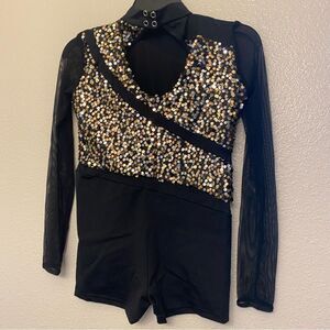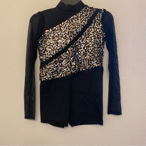 WEISSMAN Dance jazz Costume black silver gold sequin biketard 11731 XLC child