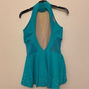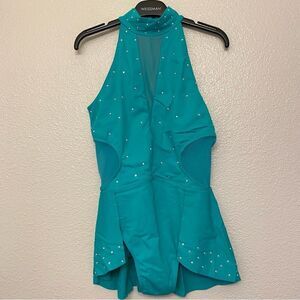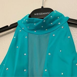 WEISSMAN Ivy Sky Dance Costume teal aqua blue Crystal Back Panel Dress D10928 LC