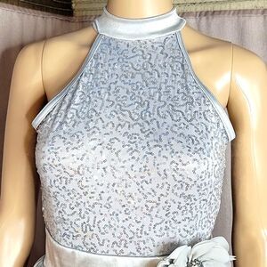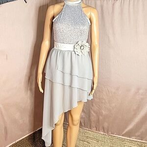 WEISSMAN Silver Sequins Gray Layered Dance Costume Small Adult