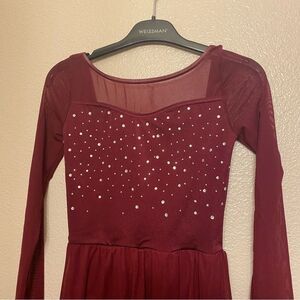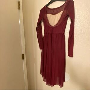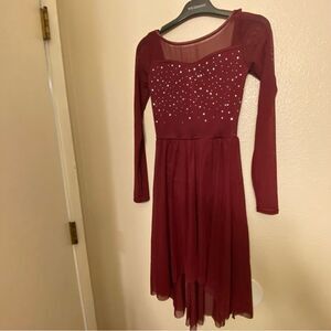 WEISSMAN solo Dance Costume burgundy red maxi Mesh High-Low Midi Dress 14614 LC