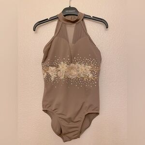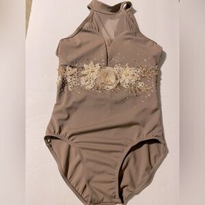 WEISSMAN solo custom Dance Costume Tan brown modest drape leotard MT10188 LC-large child