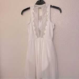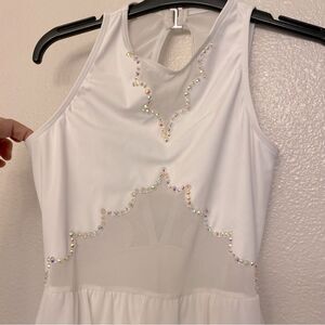 WEISSMAN solo custom Dance white Costume rhinestoned Scallop Hem Dress D10958 LC
