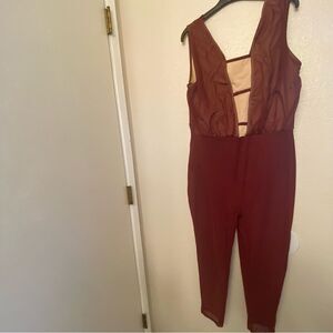 WEISSMAN Dance Costume Burgundy red jumpsuit Mesh Cropped Unitard SM11090 XLA