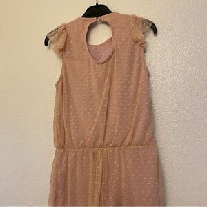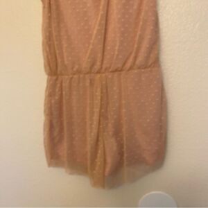 Blush pink Romper is made of shiny spandex with a large dot Point d'Esprit overlay