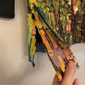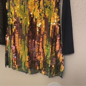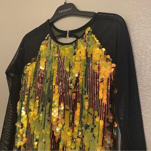 WEISSMAN Dance Costume shift dress Long sleeve black gold sequin Cool 14452 XLC