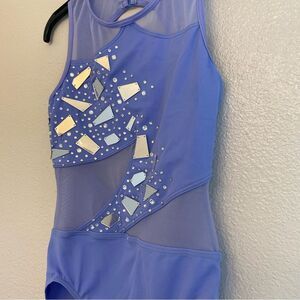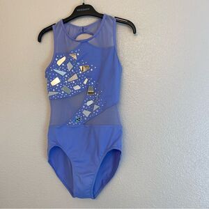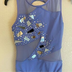 WEISSMAN Dance Costume solo custom Blue mesh leotard Crystal rhinestone SA