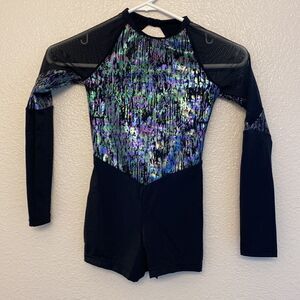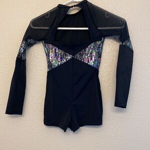 WEISSMAN Dance costume NATURAL 11837 black silver long sleeve biketard MC