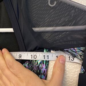 Long sleeves are made of power mesh, metallic drip spandex and matte nylon/spandex