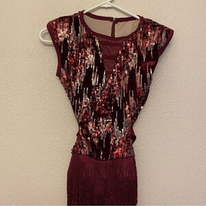 WEISSMAN Elite Dance Costume burgundy red sequin fringe Belong D13198 SA