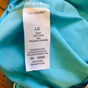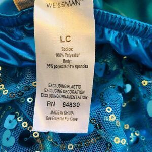 WEISSMAN Girls Leotard Unitard Blue Halter Sequined Dance Costume Size LC Large Child Condition: very good A6507sl .6