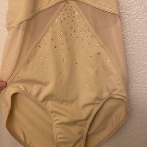 WEISSMAN Ivy Sky Dance Costume beige tan nude Crystal Halter Leotard MT10716-LC