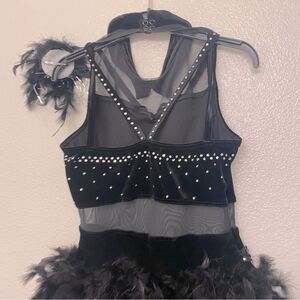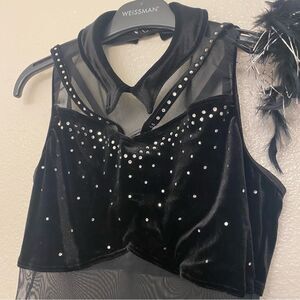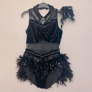 WEISSMAN elite solo Dance Costume black Crystal feathers Leotard 15752 MA-Medium adult Anything I Do