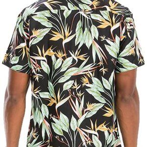 *This stylish tropical print shirt features a vibrant botanical pattern with exotic leaves in green, yellow, and orange tones against a dark background. Made from lightweight, breathable fabric perfect for warm weather. The classic short-sleeve button-up design offers versatility for casual outings, beach vacations, or summer parties. The regular fit provides comfort while the bold Hawaiian-style print makes a fashionable statement. Ideal for men seeking fashion casual wear with tropical flair.