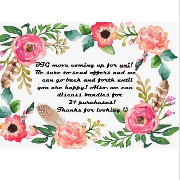 BIG move coming up for uni! Be sure to send offers and we can go back and forth until you are happy! Also, we can discuss bundles for 2+ purchases!