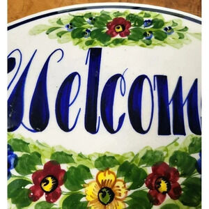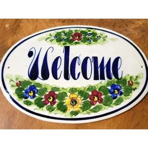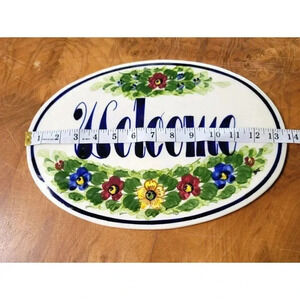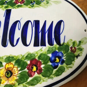 WELCOME SLATE SIGN Flowers Hanging Garden In/Outdoor Hand Paint Oval