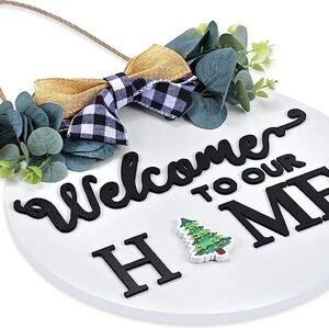 WELCOME TO OUR HOME WHITE INTERCHANGEABLE WOODEN SIGN DOORKNOCKER SIZE 1…