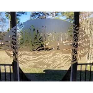 WELCOME adhesive decal etched glass vinyl fern 11×17 door decor