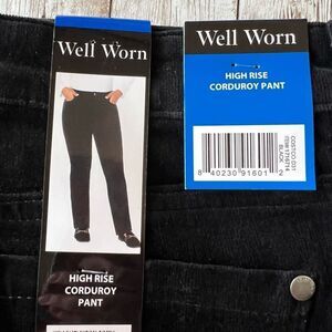 WELL WORN Corduroy Pants Women’s Sz 10 Black High Rise Straight Leg Stretch NWT