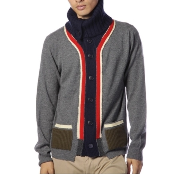 WENDI REED Cashmere Turtleneck Cardigan Striped Colored Placket - Size 1 (Small)