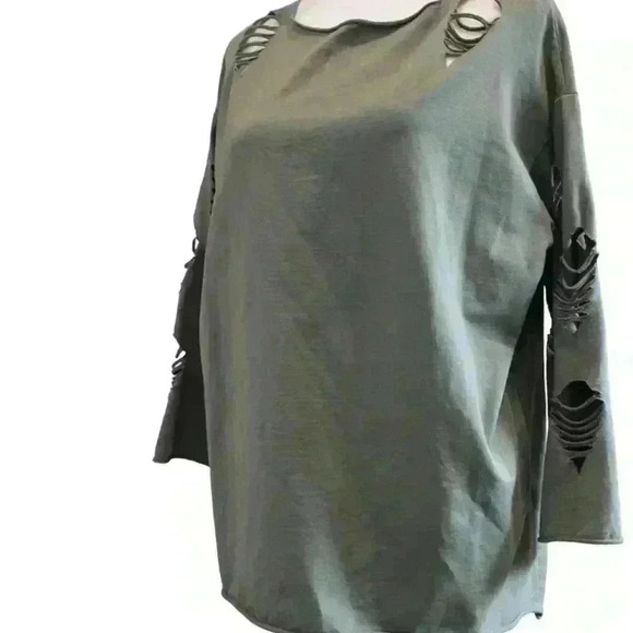 WENDY TRENDY RARE FIND DISTRESSED SWEAT SHIRT COLOR GREEN GRAY SIZE M