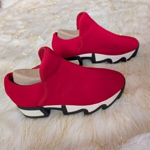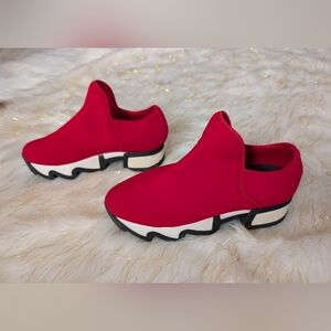 Step out in style with these vibrant red slip-on sneakers. Perfect for casual outings, these shoes offer comfort and a bold look. Ideal for adding a pop of color to any outfit.