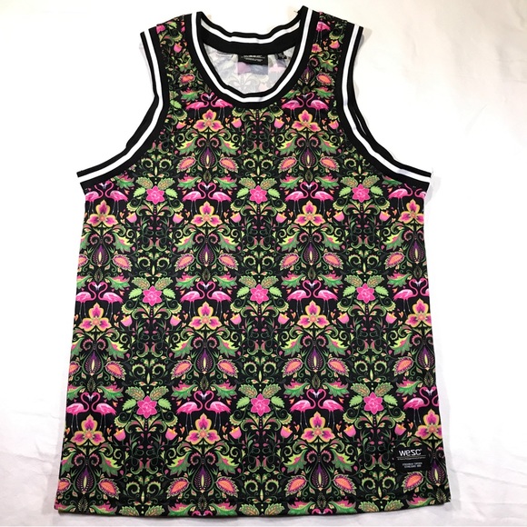 WeSC Multicolor Tank Top in Flamingo Go Wild pattern design.