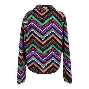 Design: This is the Mitch Zigzag atyle, a colorful chevron pattern with alternating stripes of pink, yellow, green, blue, and purple. This gives the pullover a fun and eye-catching look.