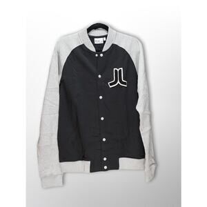 WESC Men's Gray/Black Letterman Inspired Sweater Jacket - L