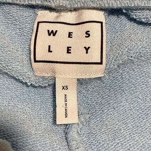WESLEY X BANDIER Women's XS Baby Blue Jones Jogger Sweatpants with Rainbow Leg Stripe. Excellent condition! Waist measures 14” across, inseam 25”.