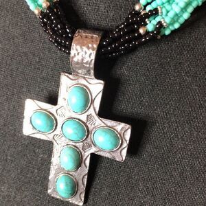 WEST & CO Cross Beaded Faux Turquoise Necklace