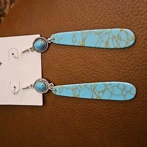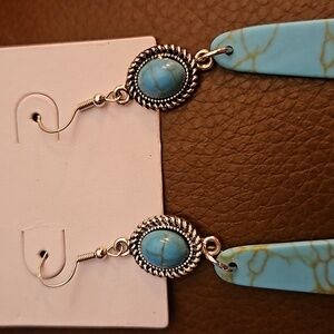 WEST & CO Faux Turquoise Extra Long Drop Dangle Hook Earrings