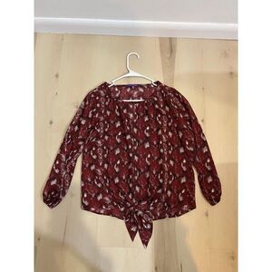 WEST K Women's Veronica Tie Front Blouse Small in Burgundy Snake NWOT