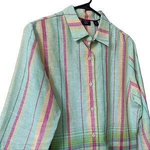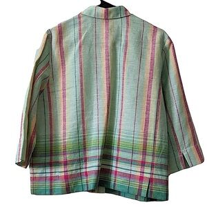 Westbound Essentials Bright Pastel Plaid Linen Lagenlook Blouse Size 16 Petite