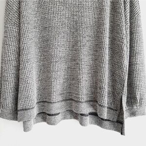 • Long sleeve soft and comfy turtle neck pullover top in light marled grey with high low hem
