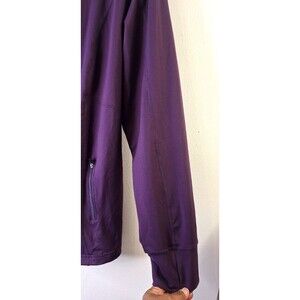 This is a Westbound purple full zip track jacket for women in size XL, made of polyester blend fabric in a solid purple color. It is suitable for casual wear, activewear, and various physical activities like gym training, track and field, and yoga. The jacket features long sleeves, a short length, and is machine washable. Perfect for outdoor activities in fall, winter, and spring seasons. PTP 23.5 in. Length 30 in.