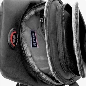 Westend This sleek black belt bag features a bold red accent, offering style and functionality for your essentials. Perfect for everyday use. nylon unisex, Crossbody outdoor sports, hiking camping, climbing running cycling, travel so on etc. lots of storage pockets.12” Wide 9”Length