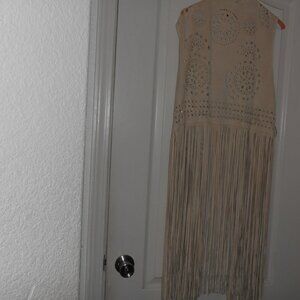 WESTERN BOHO STYLE TAN FAUX SUEDE LEATHER FRINGE EYELET VEST PYRAMID COLLECTION