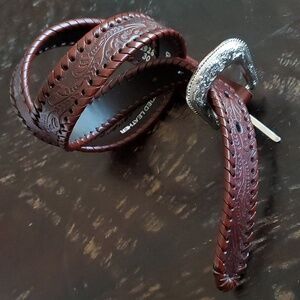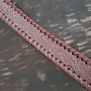 WESTERN BROWN GENUINE LEATHER BONDED BELT 5 HOLE SIZE 30 NWOT TOOLED BOHO CHIC