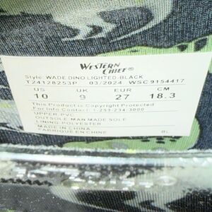 WESTERN CHEIF Toddler Wade Dinosaur Lighted Black Boots Size 10