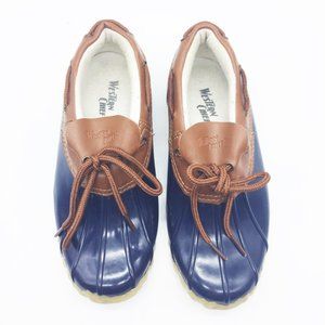 WESTERN CHIEF 7M Rain Duck Moccasin Slip On Navy / Brown Leather Womans