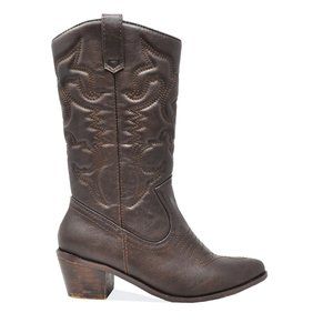 Introducing the ultimate cowboy boot for the stylish and sophisticated individual - our calf-height heeled boot with engraved detailing and a pointed toe. Crafted with exceptional attention to detail, this boot is the perfect addition to any wardrobe, whether you're looking for a timeless classic or a statement piece.