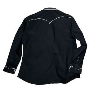 WESTERN Shirt Embroidered Black White Trim Yellow Snaps Retro Womens Size XL