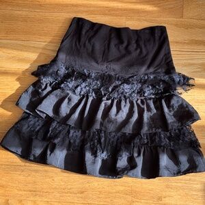 WESTERN WEAR, SIZE SMALL BLACK WITH FRINGE MINI SKIRT. CONTAINS 100% NYLON LACE,94% RAYON 6% SPANDEX.