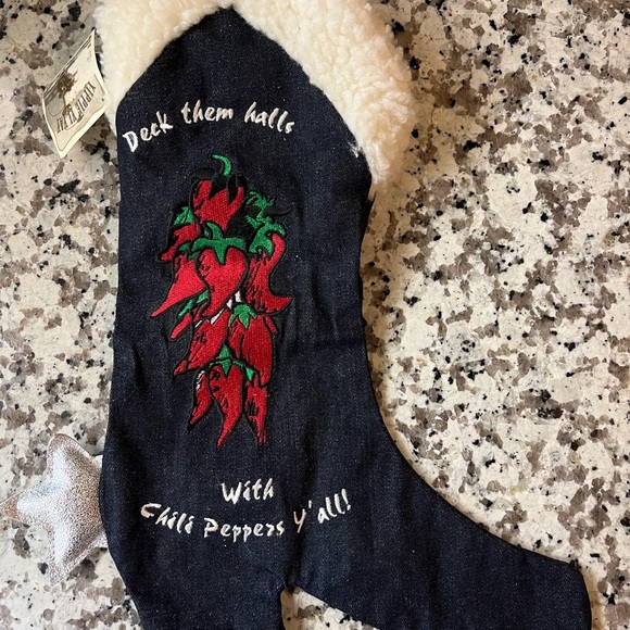 WESTERN YIPPIE YI YAY COWBOY CHRISTMAS STOCKING NEW WITH TAGS CHILI PEPPERS