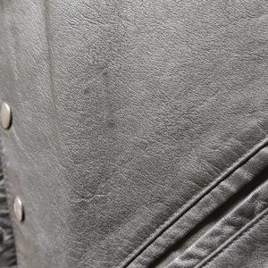 pre owned in good condition, appears to be some loose stitching on the front and minor discoloration . Snaps show some tarnish.